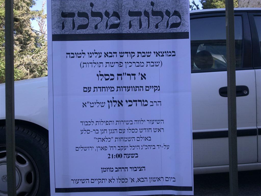 במוצאי שבת יתקיים מלווה מלכה והתוועדות עם הרב מרדכי אלון לקראת ראש חדש כסלו. האירוע יתקיים באולם השמחות "כלאתי" בשכונת רמות אשכול בירושלים. את הערב ילווה הנגן חנן בר-סלע.