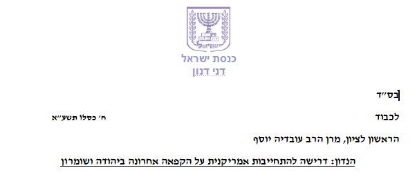 מכתבו של ח"כ דנון לרב עובדיה יוסף
