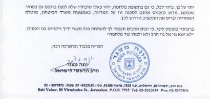 קטע ממכתבו של הרב מצגר לשר הבטחון (באדיבות רדיו קול חי)
