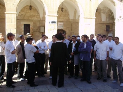 הרב ישראל אריאל בשיחה עם תלמידים בהר הבית (הר הבית)