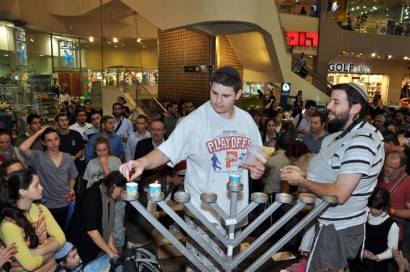 בשבוע שעבר (ה'), הגיעו עשרות מתנדבים למבצע הדלקת נרות מיוחד בלב תל אביב. לאחר שהדליקו נרות יחד עם 70 בעלי עסקים מרחוב אבן גבירול, יצאו המתנדבים למרכז הקניות "דיזינגוף סנטר" שם הזמינו את כל הנוכחים להדליק נרות החנוכה בשירה ובריקודים.