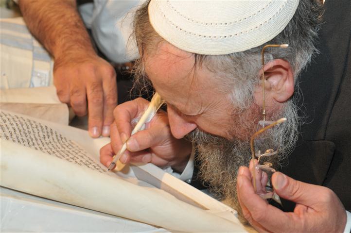 הרב שמואל אליהו כותב את האות האחרונה בספר התורה (ישיבת ההסדר בצפת)