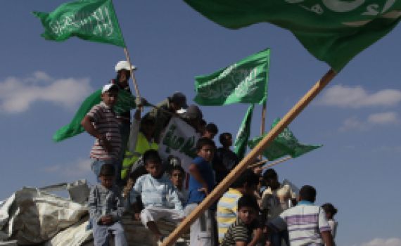 נערי התנועה האיסלמאית על הריסות המסגד (ארכיון פלאש90)