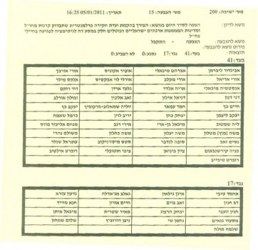 העבודה: 10 ח"כים – שלי יחימוביץ', דניאל בן סימון, אבישי ברוורמן, עמיר פרץ, איתן כבל, עינת וילף, מתן וילנאי, אהוד ברק, בנימין בן אליעזר, אורית נוקד
