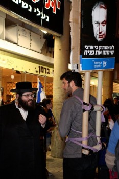 פעילי השמאל הלאומי, תנועת המחאה שנוסדה על ידי אלדד יניב ושמואל הספרי, יצאו לחלק פליירים וחומרי הסברה על גיוס מלא ושוויוני בעיר החרדית בבני ברק.