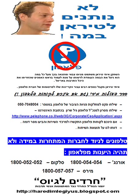 "השחקן הזה מתהדר בכך שלא עשה צבא, ובחברה הישראלית זה עובר בשתיקה ובהשלמה, אם סוגית הגיוס כזו חשובה קצת תמוה שלחברת פלאפון לא מפריע להעסיק אותו בתור קריין הפרסומות שלהם בשנים האחרונות."