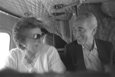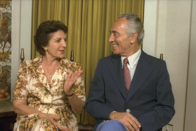 משפחת פרס המורחבת, יושב משמאל שמעון כשליצדו יושבים הוריו. מאחוריו עומדת סוניה כשלידה עומד אחיו של פרס ואשתו