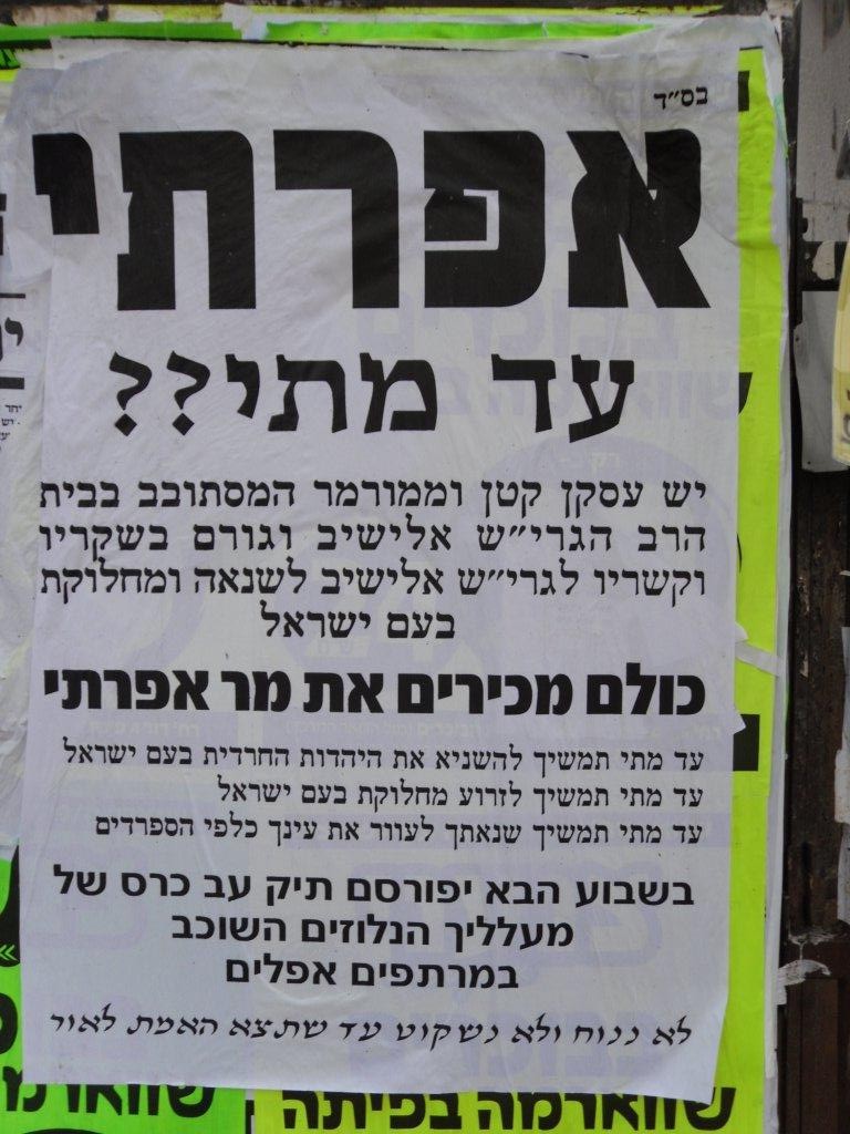 בינתיים בעולם החרדי, נראה שהרוחות שסערו הולכות ונרגעות. ההפגנה ההמונית ביום רביעי ככל הנראה תבוטל ומה שיישאר הם רק העדות האילמת לקרע בעולם החרדי בין הפלג הליטאי ובין הפלג הספרדי.