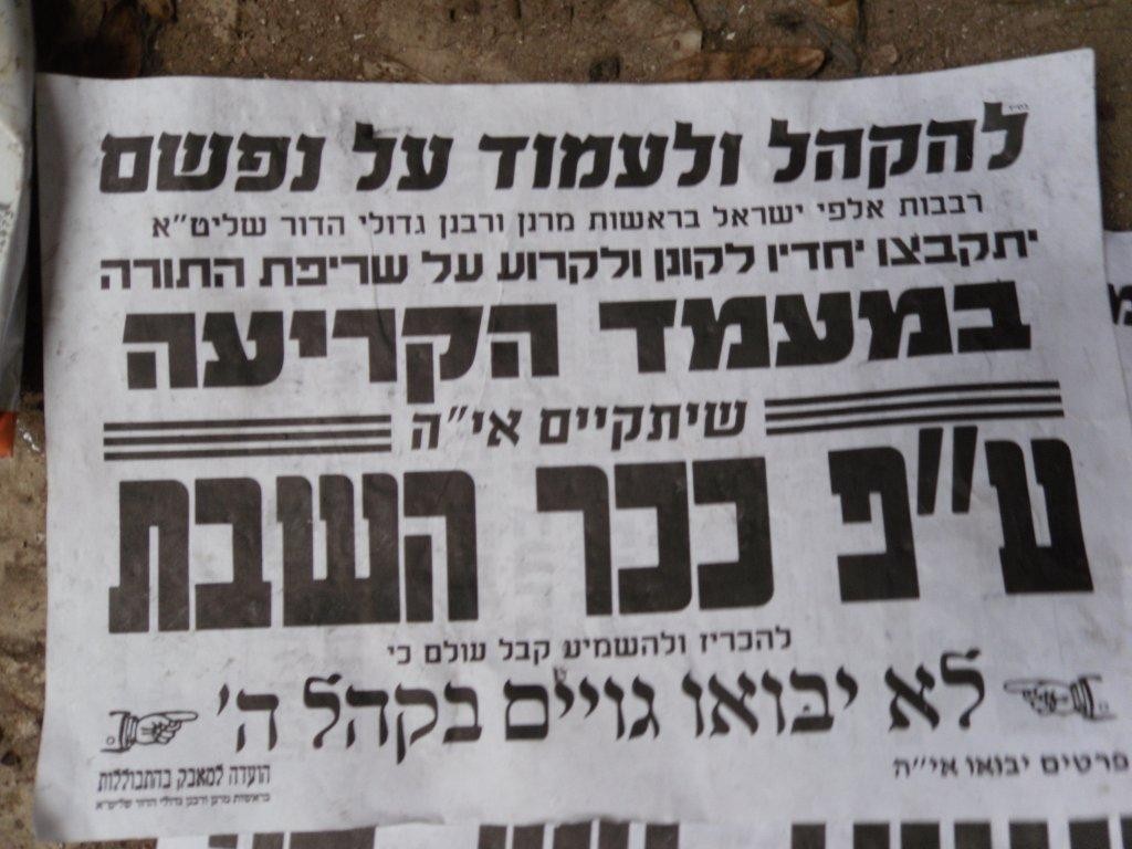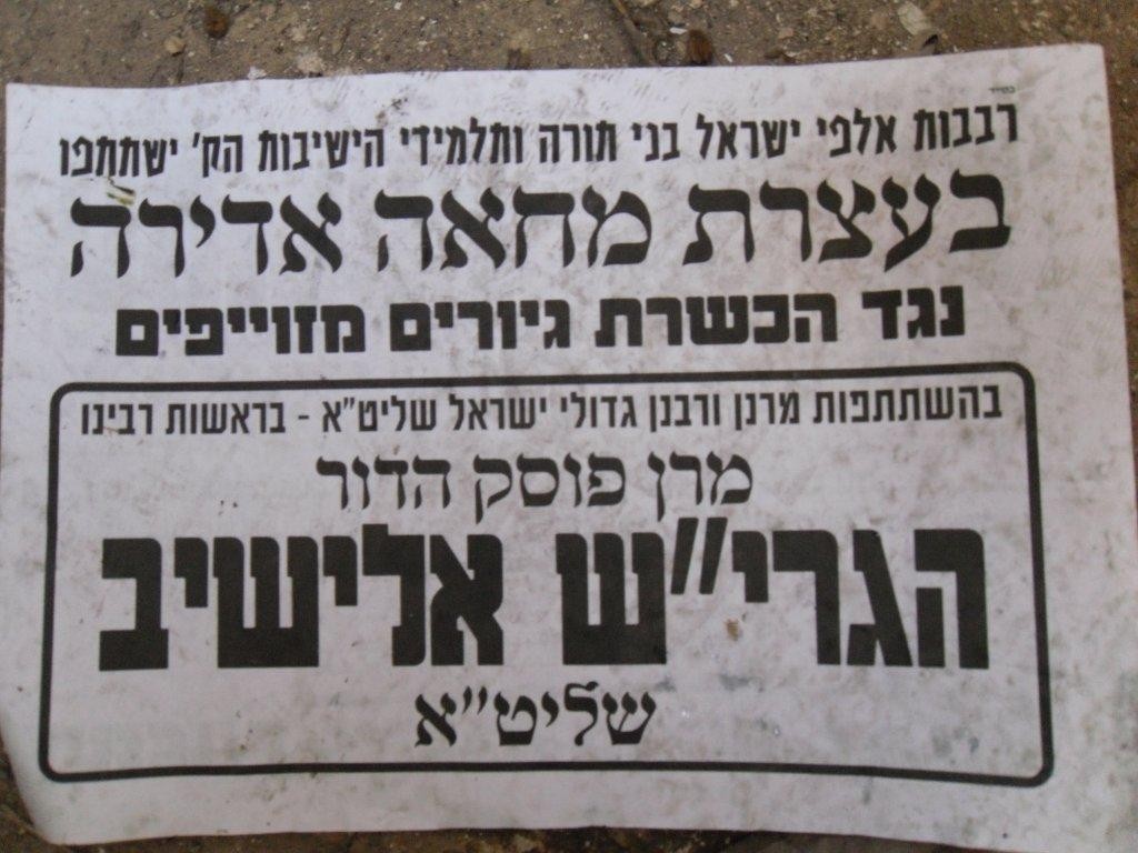המודעות הקוראות לציבור לבוא ולהפגין נגד הכשרת הגיורים (חדשות 24)