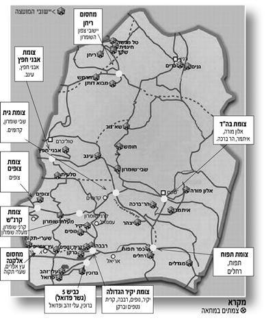 הערב גם הופצה מפה של הצמתים בהם עתידות להערך ההפגנות. הפריסה הרחבה של ההפגנות מראה על רצון של ועד מתיישבי השומרון להרחיב את המחאה לכל רחבי השומרון גם אם בהקף מצומצם.