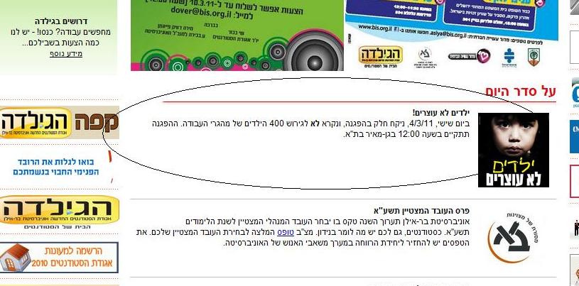 בהודעה שפורסמה באתר האגודה, ליד תמונה של ילד קטן בן של עובדים זרים נכתב: "ביום שישי 4/3/11 ניקח חלק בהפגנה, ונקרא לא לגירוש 400 הילדים של מהגרי העבודה. ההפגנה תתקיים בשעה 12:00 בגן-מאיר בת"א." נכתב בהודעה.