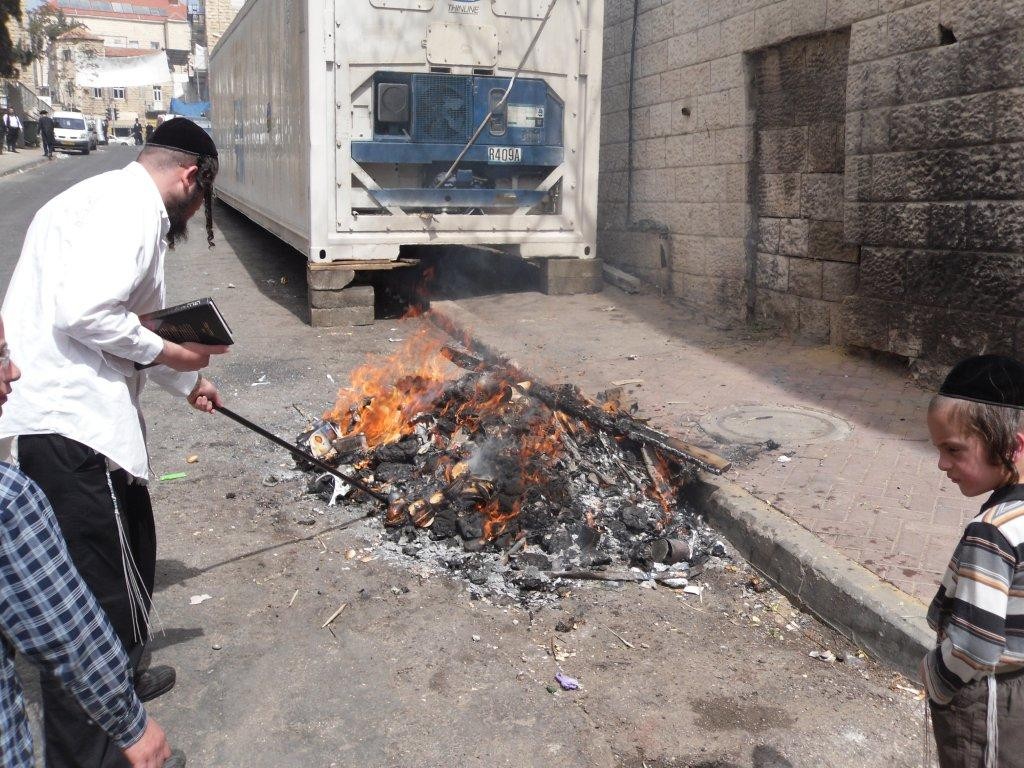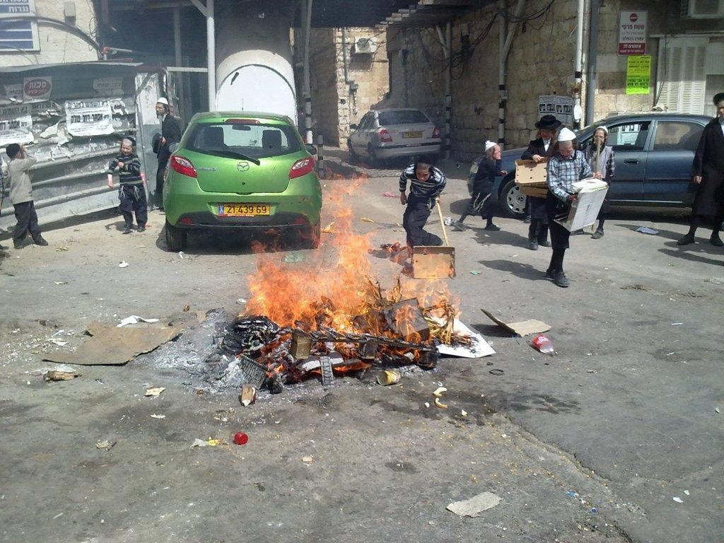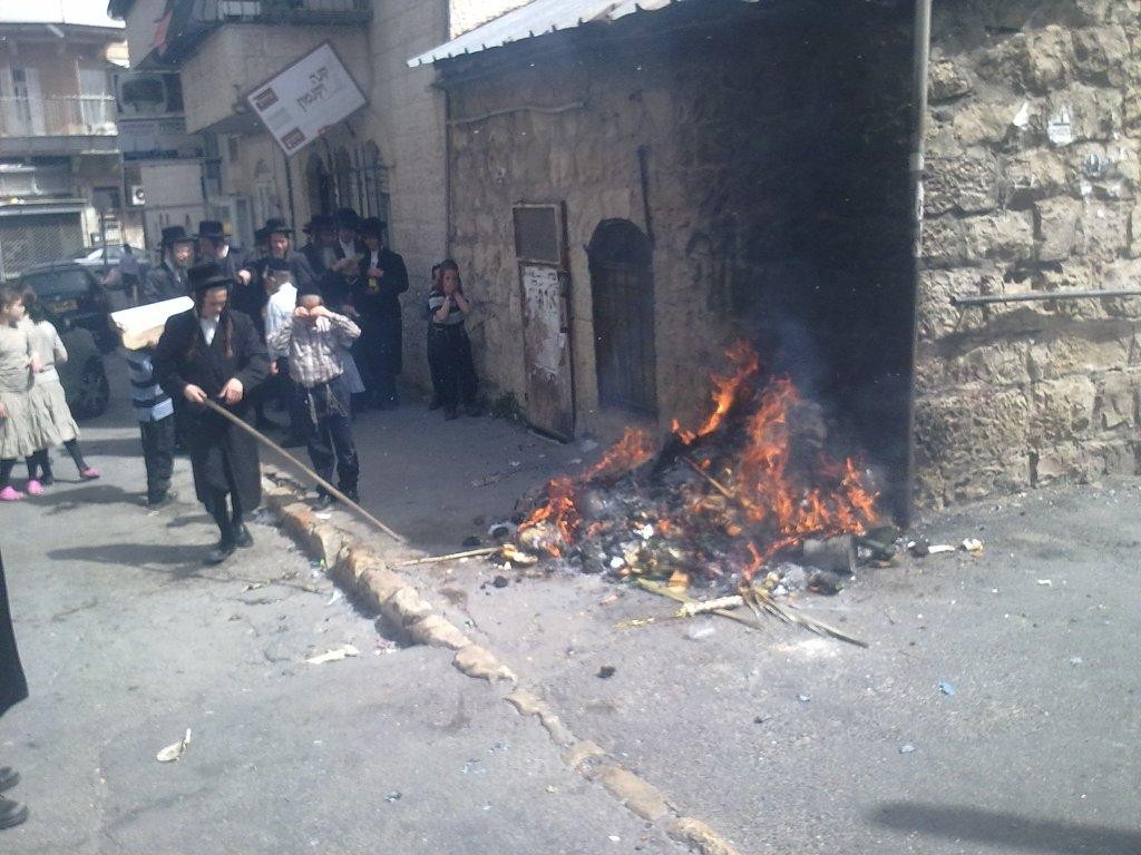 חדשות סרוגים |חדשות|תמונות מביעור חמץ במאה שערים בירושלים