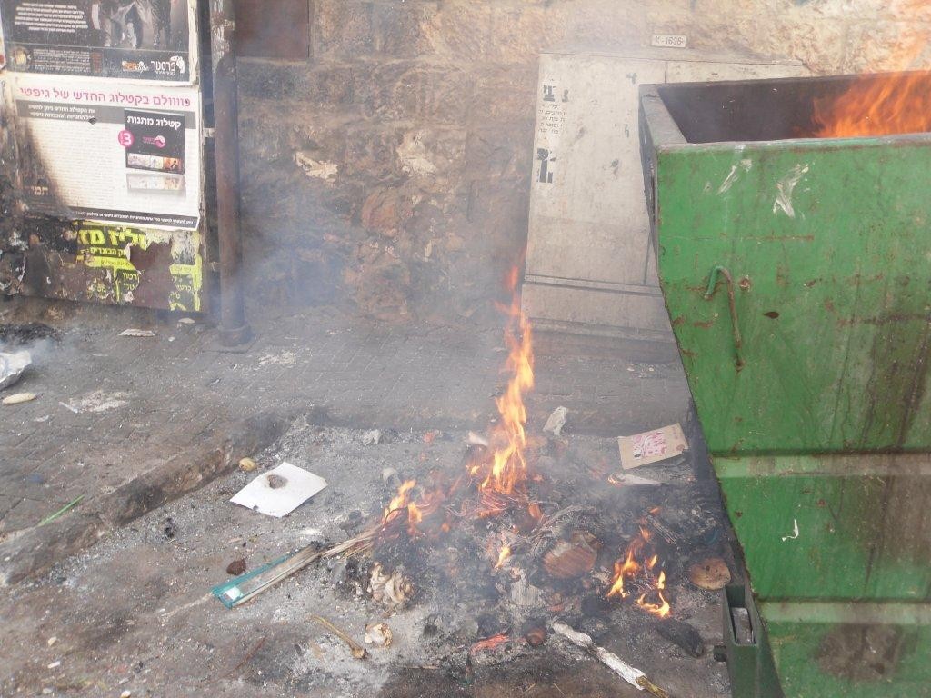 צלם סוכנות הידיעות "חדשות 24" יצא לרחובות ירושלים בשכונות גאולה ו'מאה שערים' ותיעד את מעמדי שריפת החמץ, בכל פינת רחוב, כשמתוך הרגל שרפו גם את פחי האשפה השכונתיים.