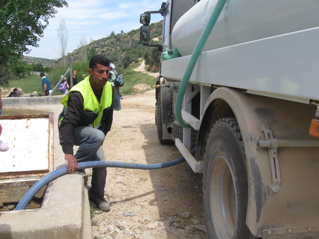 המכלית הפלסטינית שואבת מים מהמעיין (אלעד הומינר):