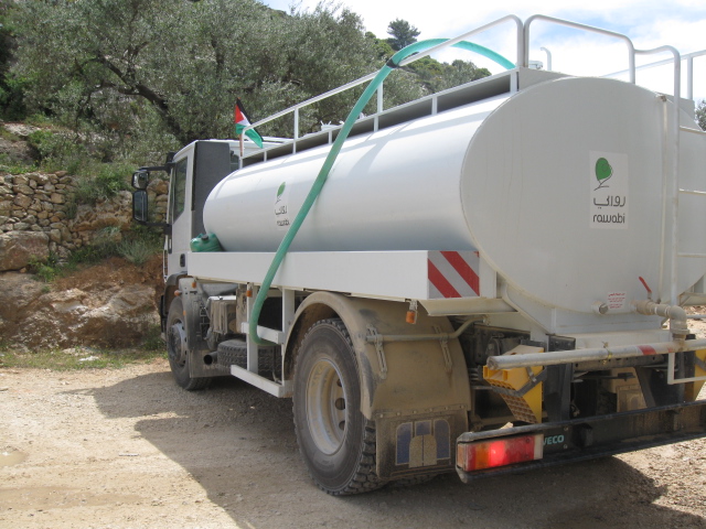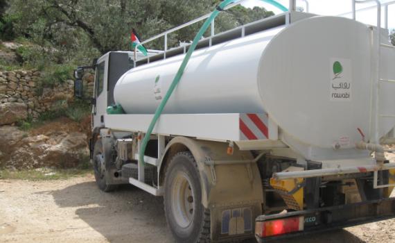 במהלך הסיור, פגשו התושבים, אשר מזה כשנה מנהלים מאבק עיקש בבניית העיר הפלסטינית השכנה, במשאית חדשה וצחורה המובילה מים ונושאת אחר כבוד את סמלה של העיר רוואבי ואת דגל פלסטין.