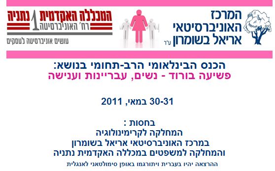 בעוד כשלושה שבועות, צפוי להתקיים באריאל בשיתוף עם מכללת נתניה, כנס קרימינולוגיים עולמי שיעסוק בפשיעה של נשים. הכנס שכותרתו "פשיעה בורוד – נשים, עבריינות וענישה", צפוי לכלול מרצים מהארץ, מארה"ב ומבריטניה.
