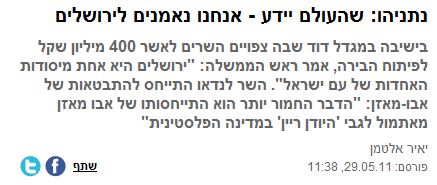 האם כשנתניהו מדבר על אחדות ירושלים, הוא נוטה לתוקפנות קיצונית נגד מדינות שכנות? כנראה שאצל כתבי ועורכי YNET כן.