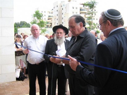 ראש עיריית חיפה יונה יהב, גוזר את הסרט, לידו השר דניאל הרשקוביץ, מימינו הרב יעקב קליין רב שכונת קרית חיים, ומנהל המכללה ד"ר יחיאל פריש