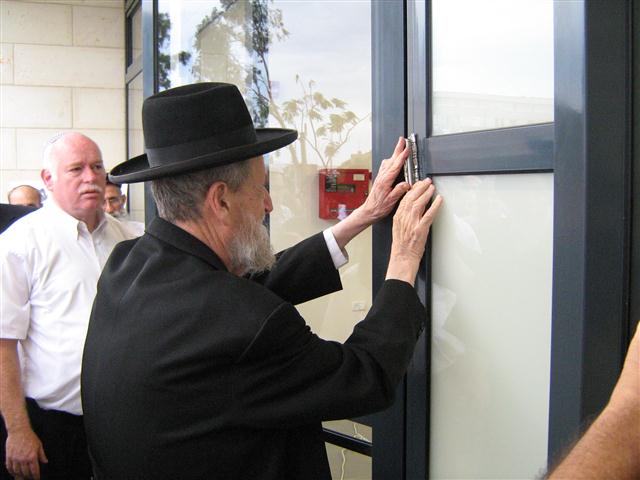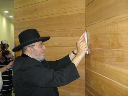 רב העיר חיפה, הרב שאר ישוב כהן, קובע מזוזה בכניסה לבניין