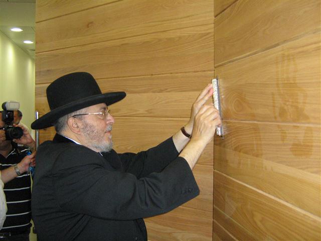 רב העיר חיפה, הרב דוד שלוש קובע מזוזה בתוך הבניין