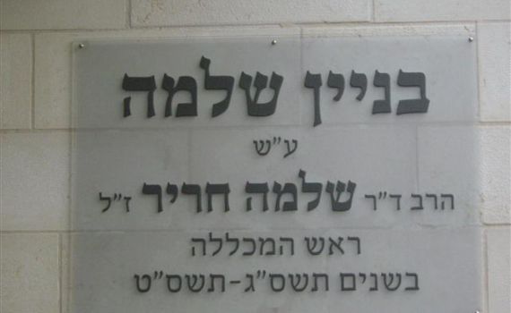 http://www.srugim.co.il/wp-content/uploads/2010/10/HARIR.jpgבמלאות שנה לפטירת הרב ד"ר שלמה חריר, ראש המכללה הדתיתת לחינוך "שאנן" בקרית שמואל, נחנך היום (א') אגף חדש במכללה הנושא את שמו – "בנין שלמה". באגף החדש אולם הרצאות רב תכליתי, וחדרי לימוד, הבנויים ברמת גימור גבוהה.