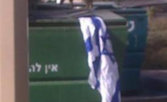 http://www.srugim.co.il/wp-content/uploads/2010/10/18102010399-Small.jpgהיום בצהרים (ב) הבחינה סטודנטית שנסעה ברכב מקמפוס הר הצופים לכיוון הגבעה הצרפתית, בדגל ישראל שזרוק במכולת אשפה בתוך מתחם כפר הסטודנטים של האוניברסיטה העברית.