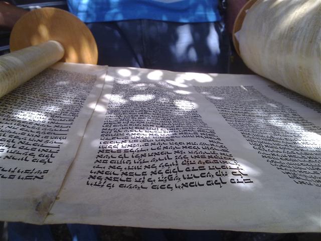 קוראים בתורה את 'ברית בין הבתרים', בחולצה סגולה ירוחם קנטמן.