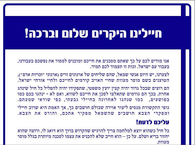 הכרוז המלא כפי שהופץ לחיילים: