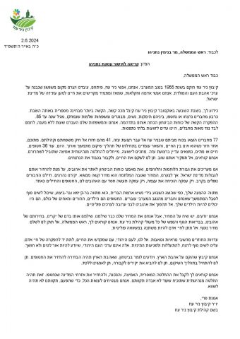 תושבי ניר עוז פנו היום לראש הממשלה נתניהו במכתב אישי, בו קראו לראש הממשלה לממש את מתווה העסקה שפורסם על ידי הנשיא ביידן, ולהחזיר את החטופים הביתה.