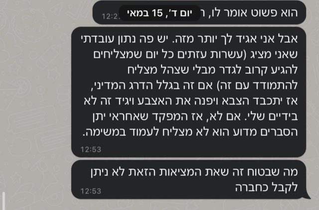 הבוקר מחבלים הפתיעו את כוחות צה"ל בתוך הפרימטר ופתחו לעברם באש. הוא ביקש שאעלה צילום מסך של אזהרותיו".