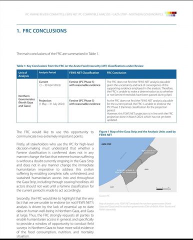 הועדה המרכזית לחקר רעב וביטחון תזונתי של האו"ם (FRC) חקרה לאורך החצי שנה האחרונה את הטענות של ארגונים בין לאומיים למצב של רעב ברצועת עזה.