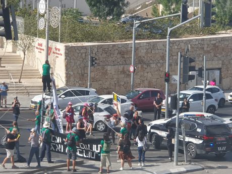 10 אנשים חוסמים כביש בת"א (פלאש90)