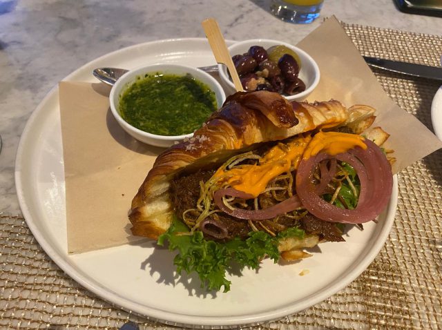 מבין מנות הפתיחה ניסינו את קרואסון האסאדו (75 ש"ח) שמורכב מאסאדו שפונדרה מעושן ומפורק, שמוגש בתוך קרואסון מלוח עם איולי פלפלים מעושנים, בצל, חסה, צ'ימיצ'ורי וקריספי כרישה.