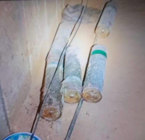 פצצות מרגמה ורקטות שנמצאו במנהרות (דובר צה"ל)