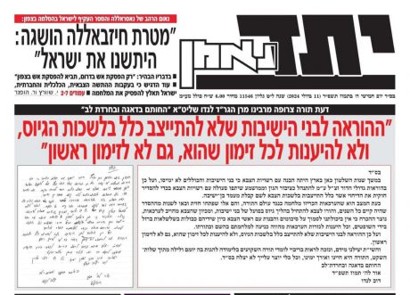 הרב לנדו הוציא מכתב חריף שפורסם הבוקר בעמוד הראשי של העיתון יתד נאמן בו הוא קורא שלא להתייצב בלשכות הגיוס ולא לשתף פעולה כלל עם צה"ל.
