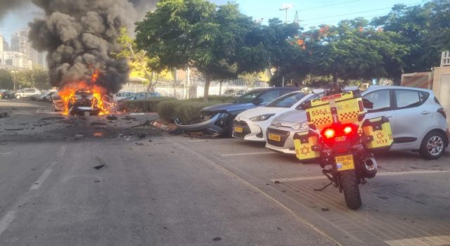 מהמשטרה נמסר: "שרידי פריט אמל"ח אותרו כעת ברכב העולה באש בפתח תקווה – במקום מטופלים שני פצועים, חקירה נפתחה לנסיבות האירוע"