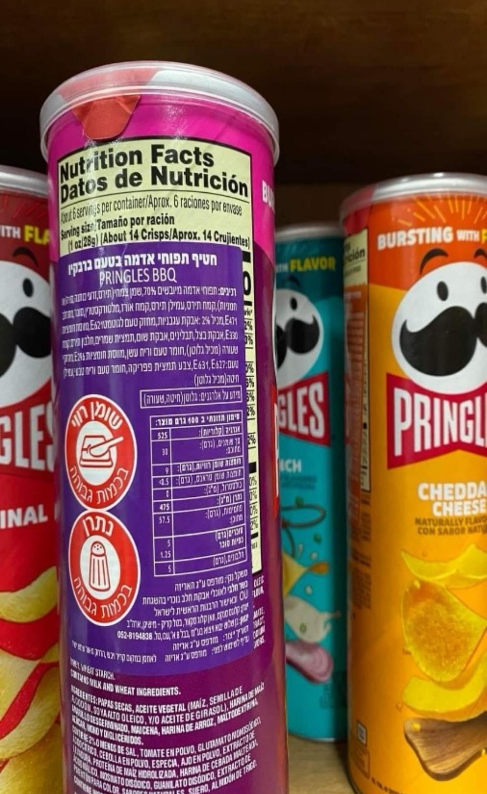 שם המוצר: חטיף תפוחי אדמה (פרינגלס) בטעם ברביקיו (צבע סגול) – יבואן: בן שלוש יבוא וייצוא בע"מ