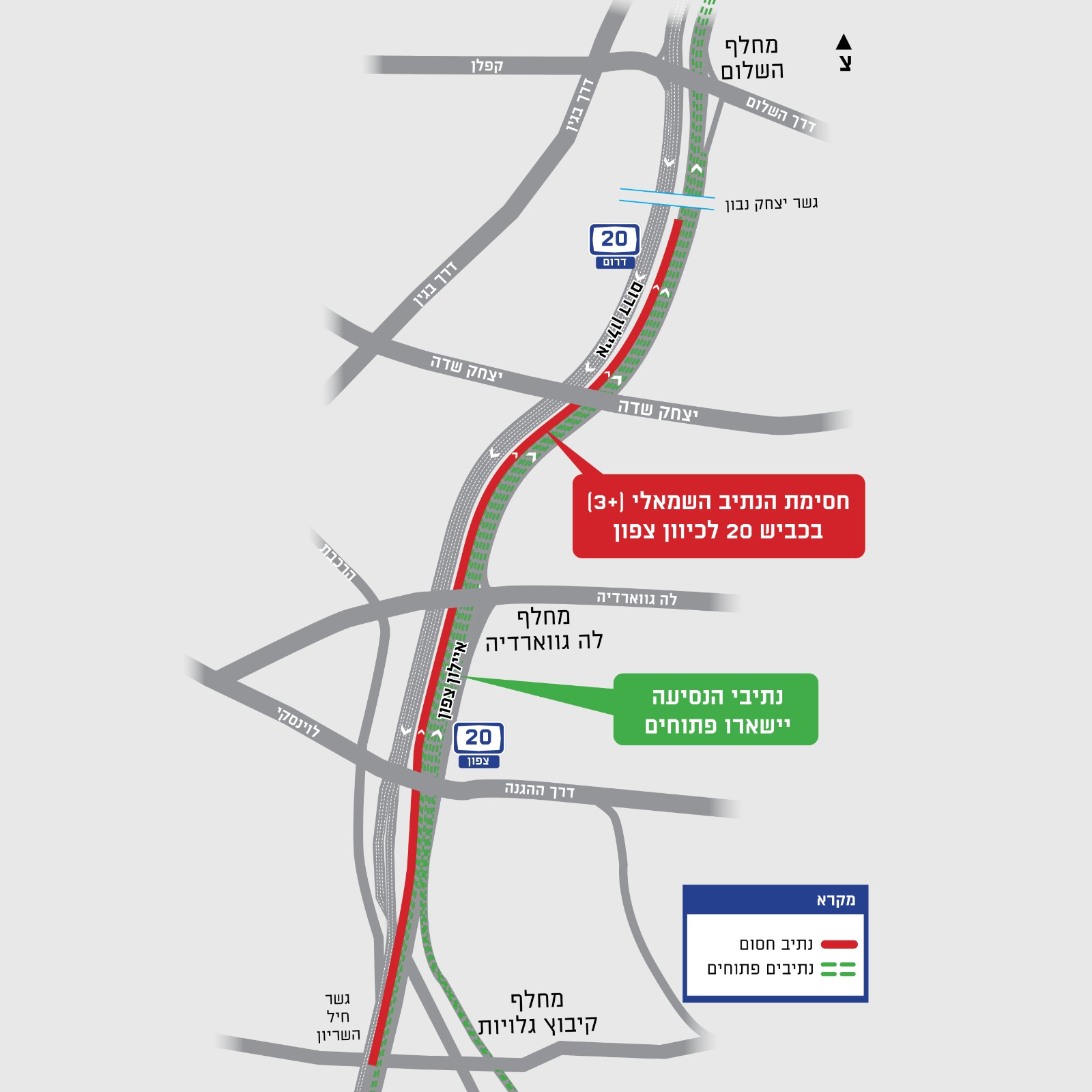 חברת נתיבי איילון הודיעה כי החל מיום רביעי (07.08) ייחסם הנתיב הייעודי לתחבורה ציבורית ושיתופית באיילון צפון בין גשר חיל השריון ועד לגשר השלום למספר חודשים