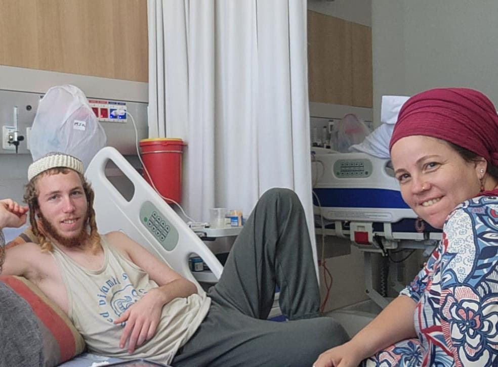 שרה שטרנליב עם בנה אהרון בבית החולים