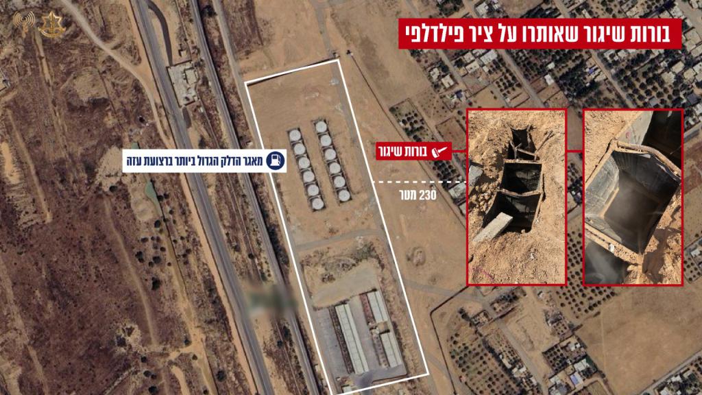 אמש, איתרו והשמידו הכוחות בורות שיגור לרקטות במרחב ציר פילדפי במרחק של עשרות מטרים ממאגר הדלק הגדול ביותר ברצועת עזה.