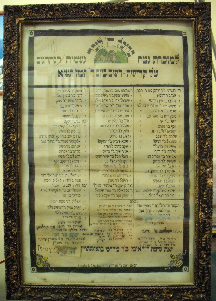 שבועיים לאחר אותו יום נורא בו הגיע לשיא טבח היהודים שהתחיל שבוע קודם, התבקש בנדיטר שהיה ידוע בכישרון הציור שלו, לצייר לוח זיכרון למתפללי בית הכנסת הגדול שנספו. הוא עשה זאת בחרדת קודש, והלוח ועליו שמות הנספים הוצב בהיכלו של בית הכנסת. בהמשך צייר עשרות לוחות זיכרון עבור בתי כנסת אחרים בעיר שביקשו להנציח את מתפלליהם שנספו.