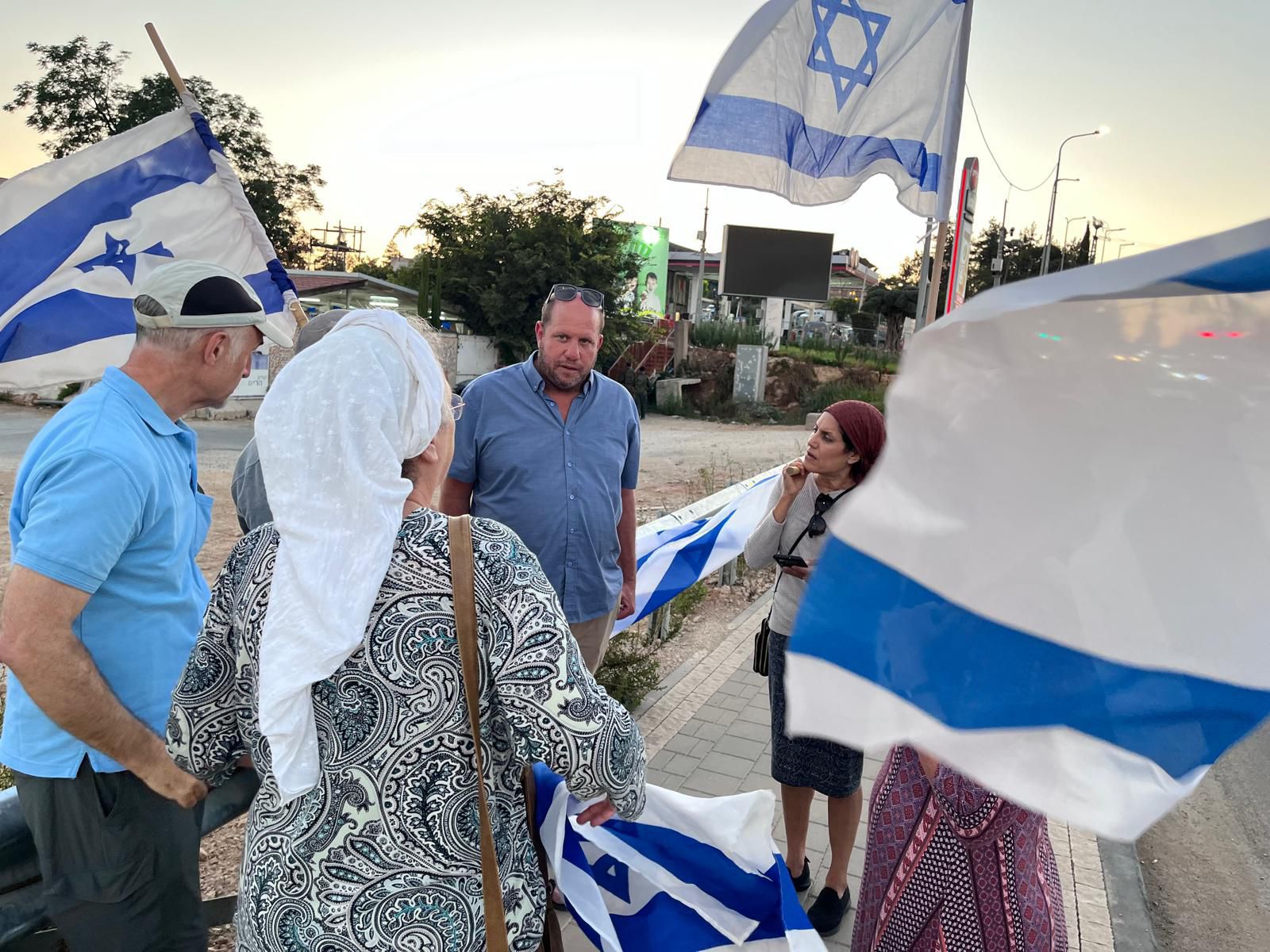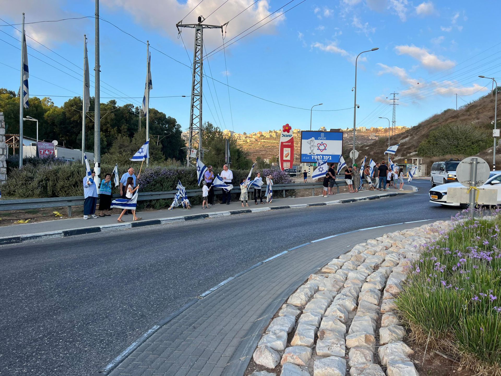 במהלך ההפגנות שנערכו ביוזמת מועצת יש"ע יצאו הערב עשרות מתושבי יהודה ושומרון לצמתים מרכזיים ברחבי האזור, כשהם נושאים דגלי ישראל.