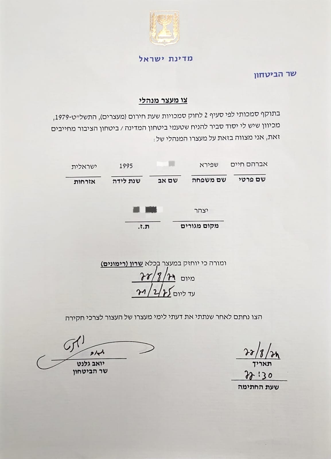 במאי סרטים דוקומנטריים שעובד על סרט שחושף את העוולות השיטתיות של השב"כ, קיבל מהם לפני שבועיים צו מנהלי.
