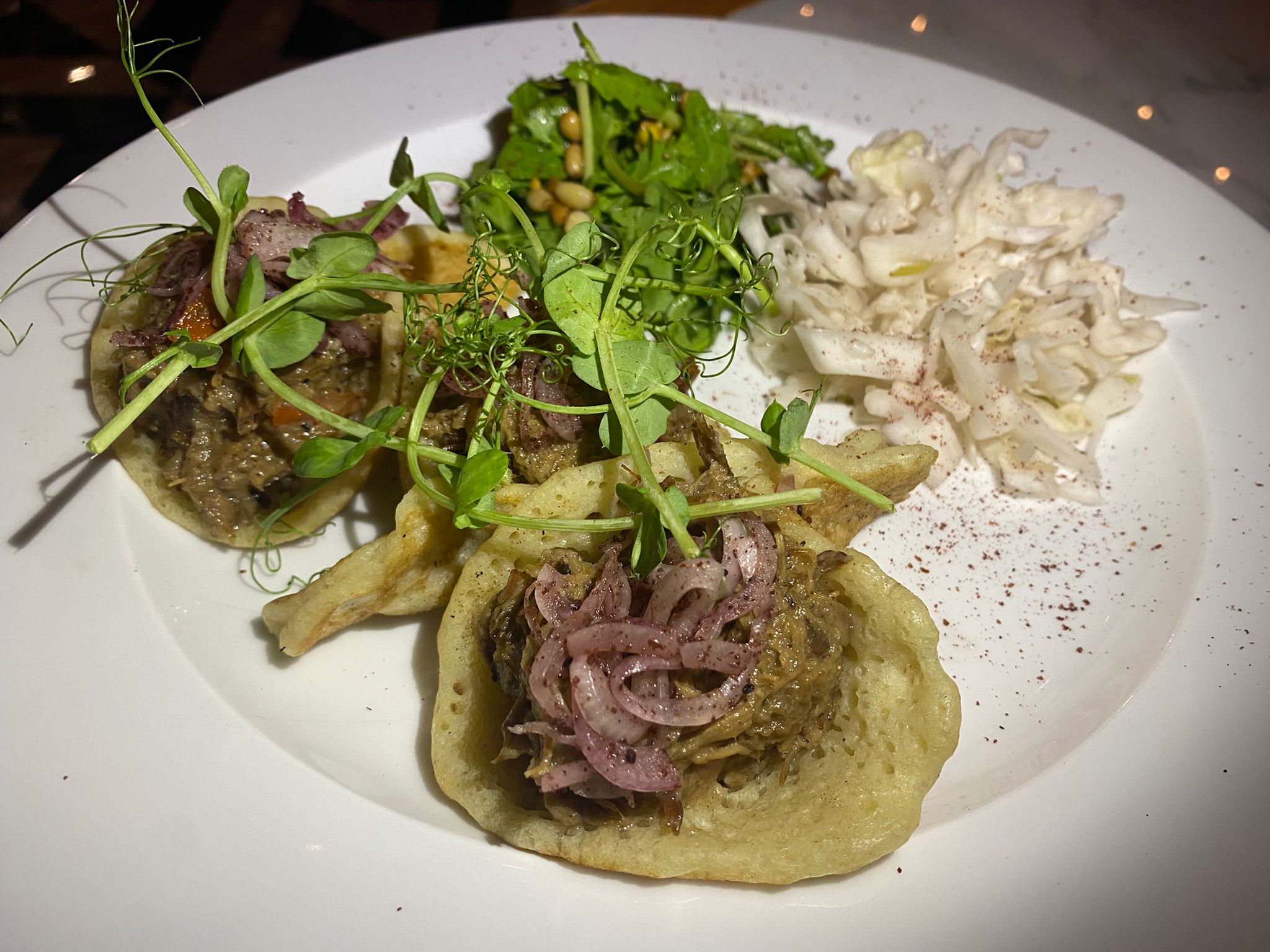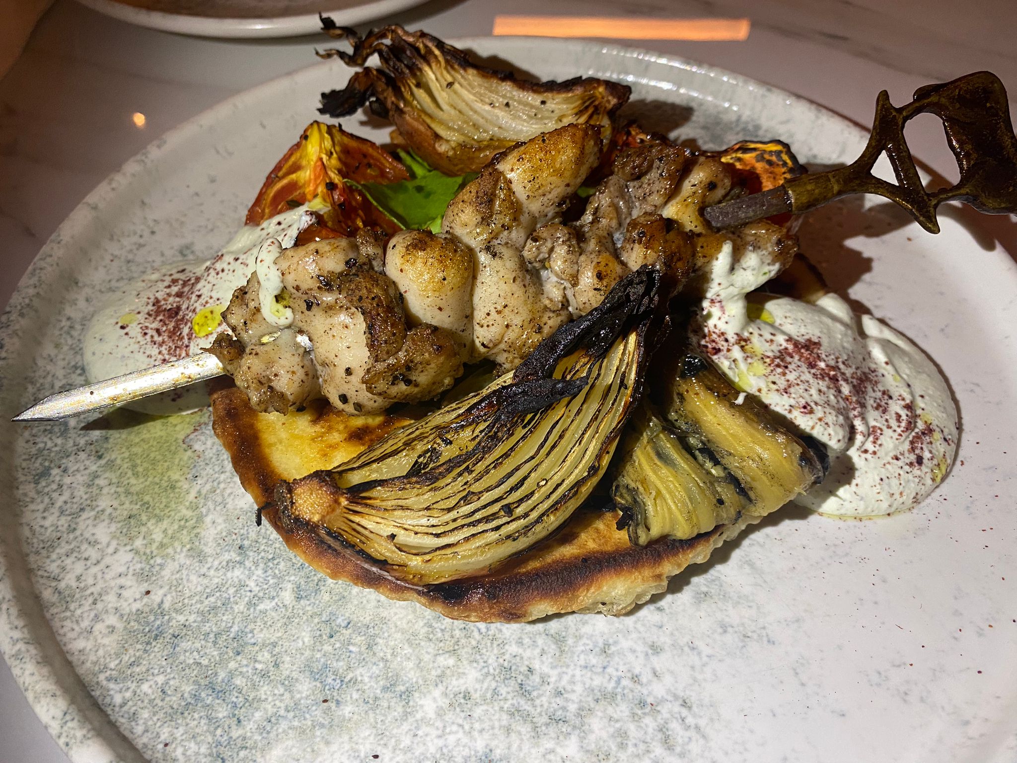 מההתחלה וגם בעקבות המלצת מנהל המסעדה, מנת הטאג'ין לחי בקר (128 ש"ח) קרצה לנו והחלטנו ללכת עליה. השילוב המיוחד של הטעמים, הירקות והקוסקוס גרמו לנו לרגע לחשוב כאילו עלינו על טיסה למרוקו, ומשם נסענו ישר ליוון עם מנת הגירוס פרגית (98 ש"ח), שהגיעה על מצע של פיתה יוונית עם יוגורט טבעוני וירקות.