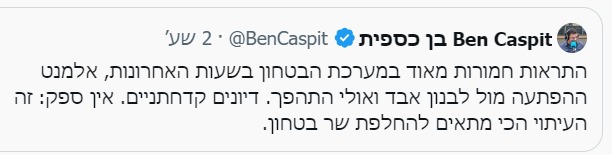 העיתונאי ואיש התקשורת בן כספית, פרסם לפני מספר שעות ציוץ בו הוא טען כי "אלמנט ההפתעה מול לבנון אבד". אחרי המבצע בו נפצעו אלפי פעילי חיזבאללה, כספית מחק את הציוץ.