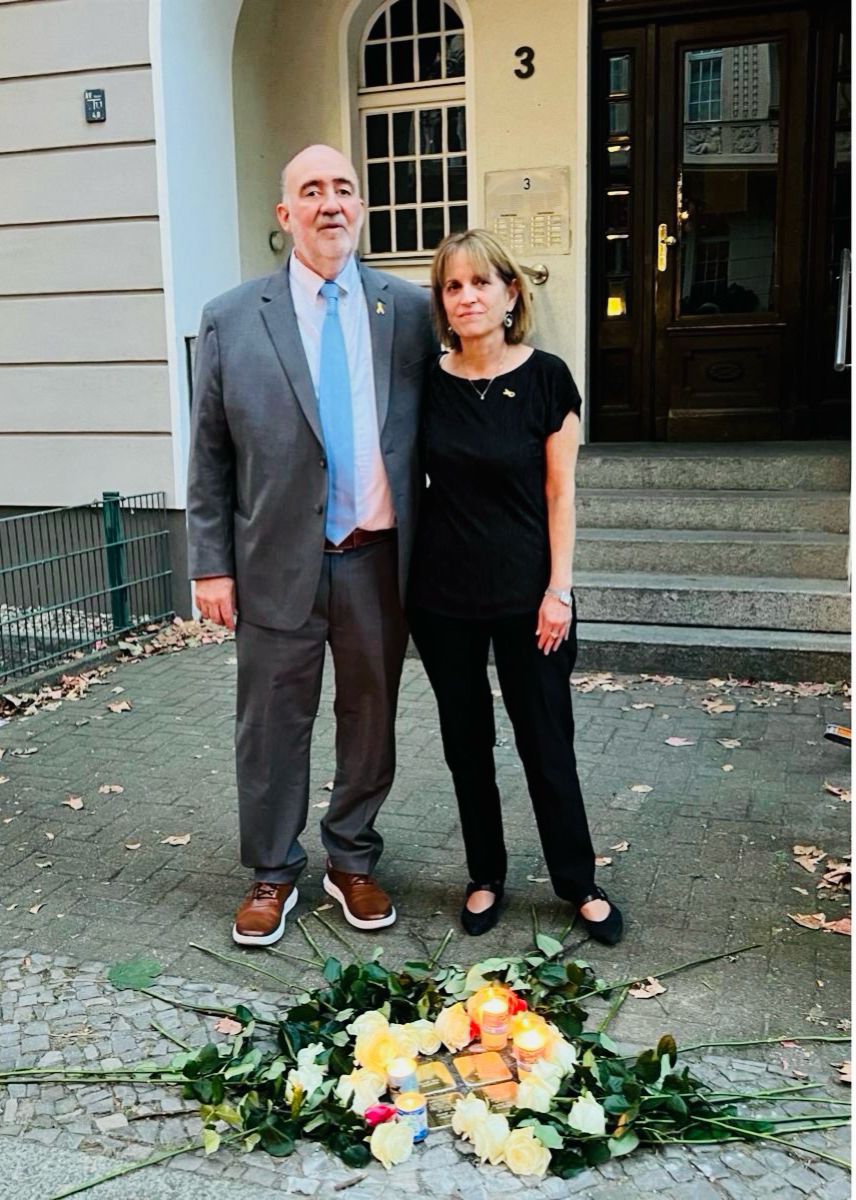 האירוע התקיים מחוץ לבית המגורים האחרון של המשפחה בגרמניה, אשר היה ברחוב אייזנצאהן 3 בברלין. את האבנים שתל במדרכה שמול הבניין גינטר דמינג, האמן שהגה ויזם את פרויקט אבני הנגף בגרמניה.