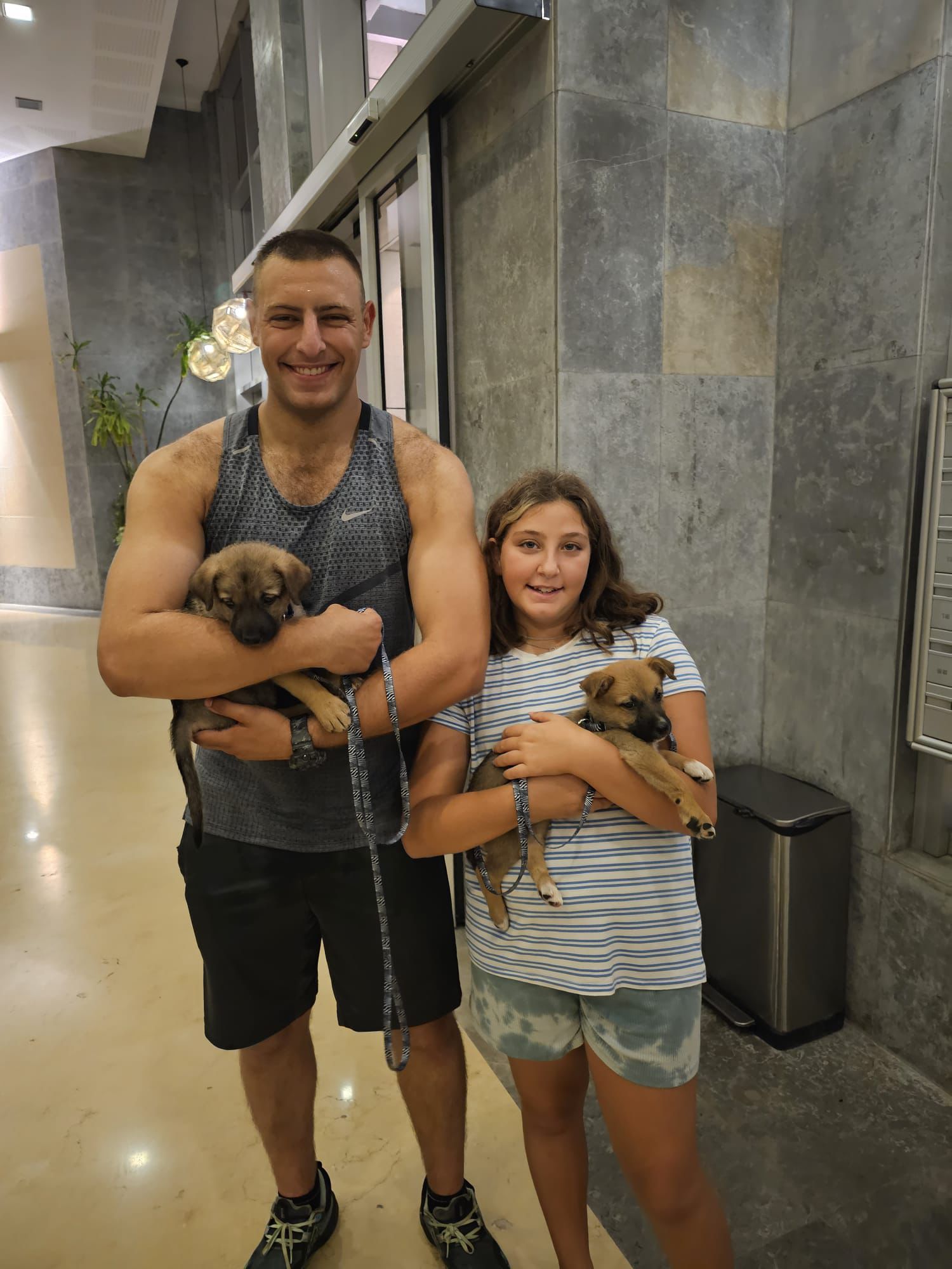 בכניסה לבית של משפחת ליבוביץ' מקבלים את פנינו שני כלבים גדולים שקופצים מהתרגשות, נועם עם חיוך מאיר וביישני לוקחת אותם הצידה ומסבירה: "תומר, הציל אותם מנחל עוז, לפני השבעה באוקטובר הם ננטשו במוצב, הוא הביא אותם הביתה ומאז הם פה איתנו, צוואה חיה".