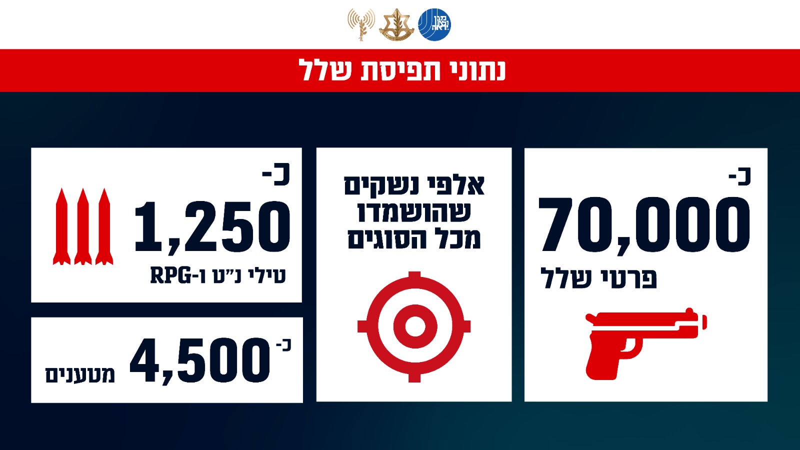 כ-1,250 טילי נ"ט וכ-4,500 מטענים