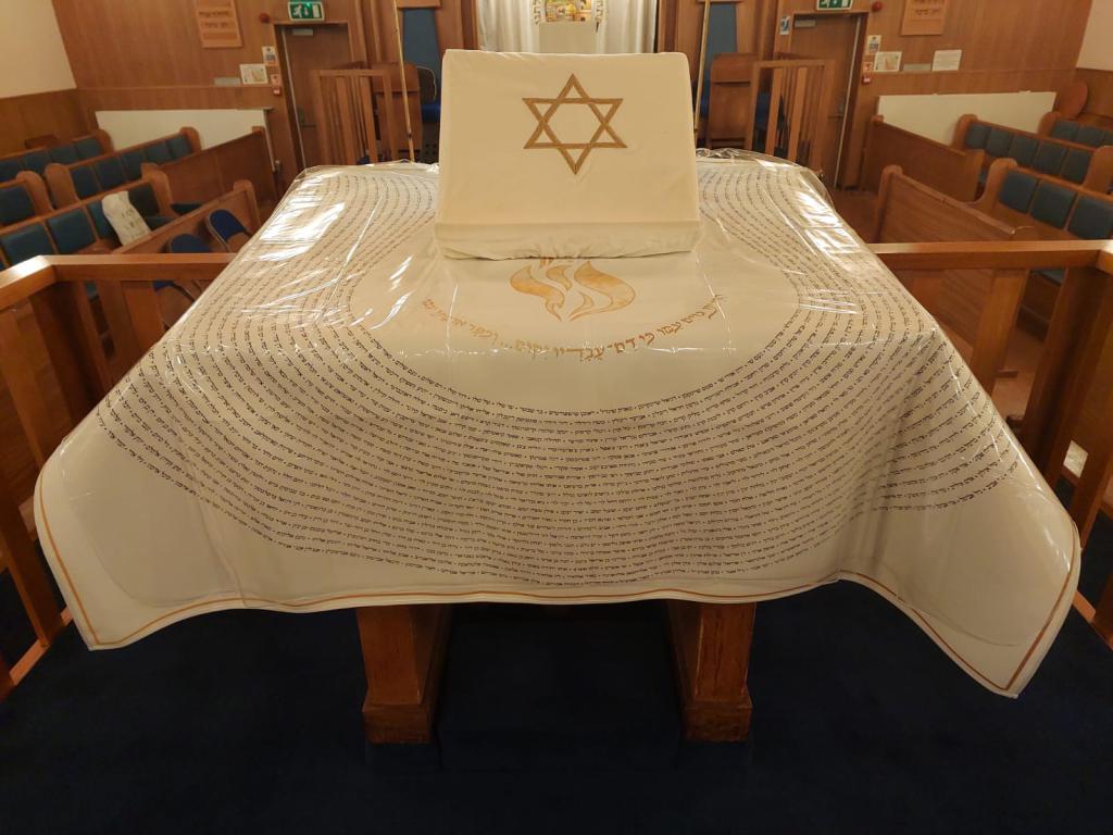 פרוכת ועליה רקומים שמות נרצחי השבעה באוקטובר