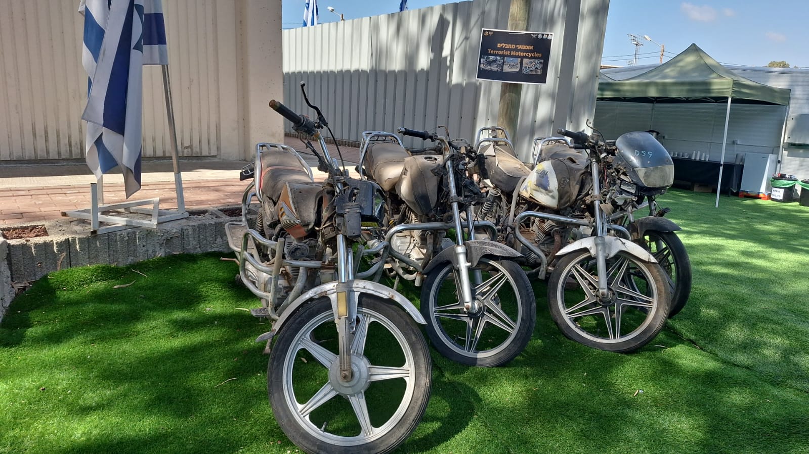 בצהרי היום הגענו למקום מספר כתבים ומשפיעני רשת וקיבלנו הדרכה על ידי סא״ל (מיל׳) עידן שרון קטלר. בתצוגה מוצגים כלי רכב וציוד איתם חדרו המחבלים בשבת השחורה, ובהם טנדרים, אופנועים, טרקטורים, מדים וממצאי מודיעין, ואמצעי לחימה בהם טילי נ״ט, רקטות RPG, רקטות וטילים, מטענים, אמצעי לחימה וכלי טיס בלתי מאוישים של ארגון הטרור חמאס.